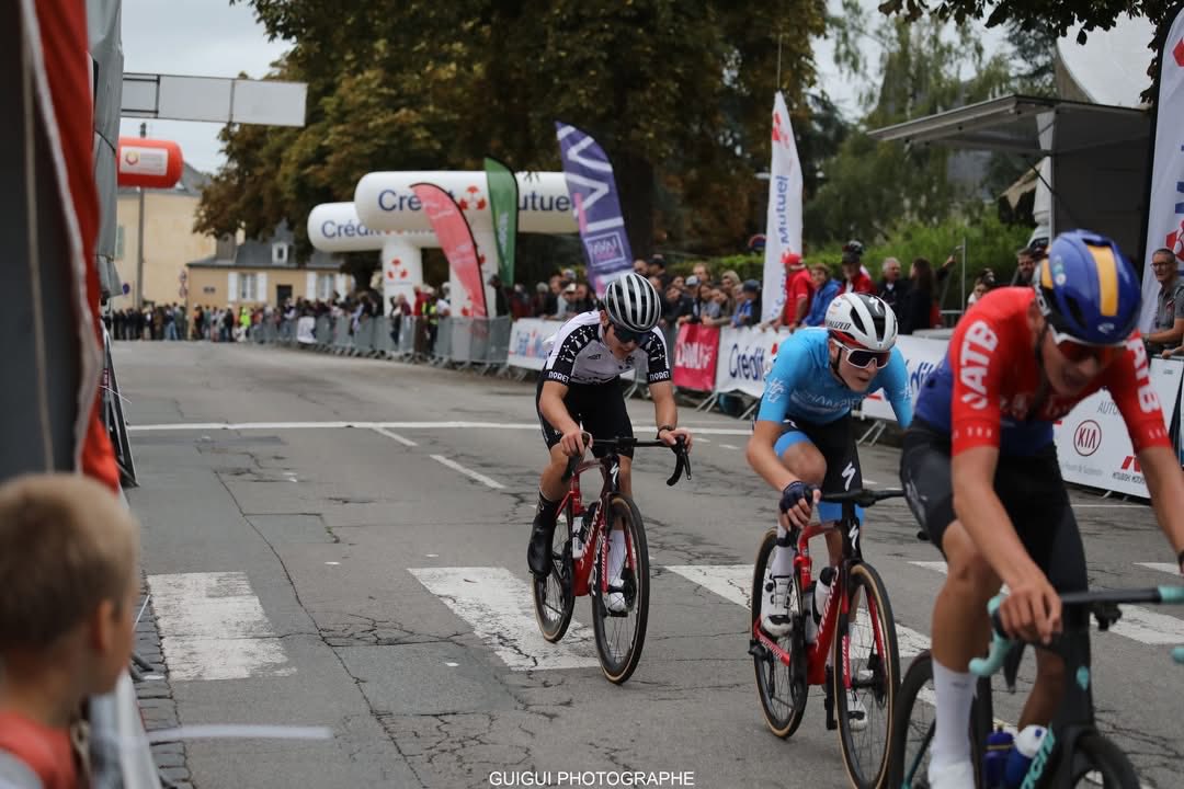 Après un début de course très offensif, le peloton s’est rapidement réduit à une cinquantaine de coureurs, avec Timéo et Pierre bien présents.
