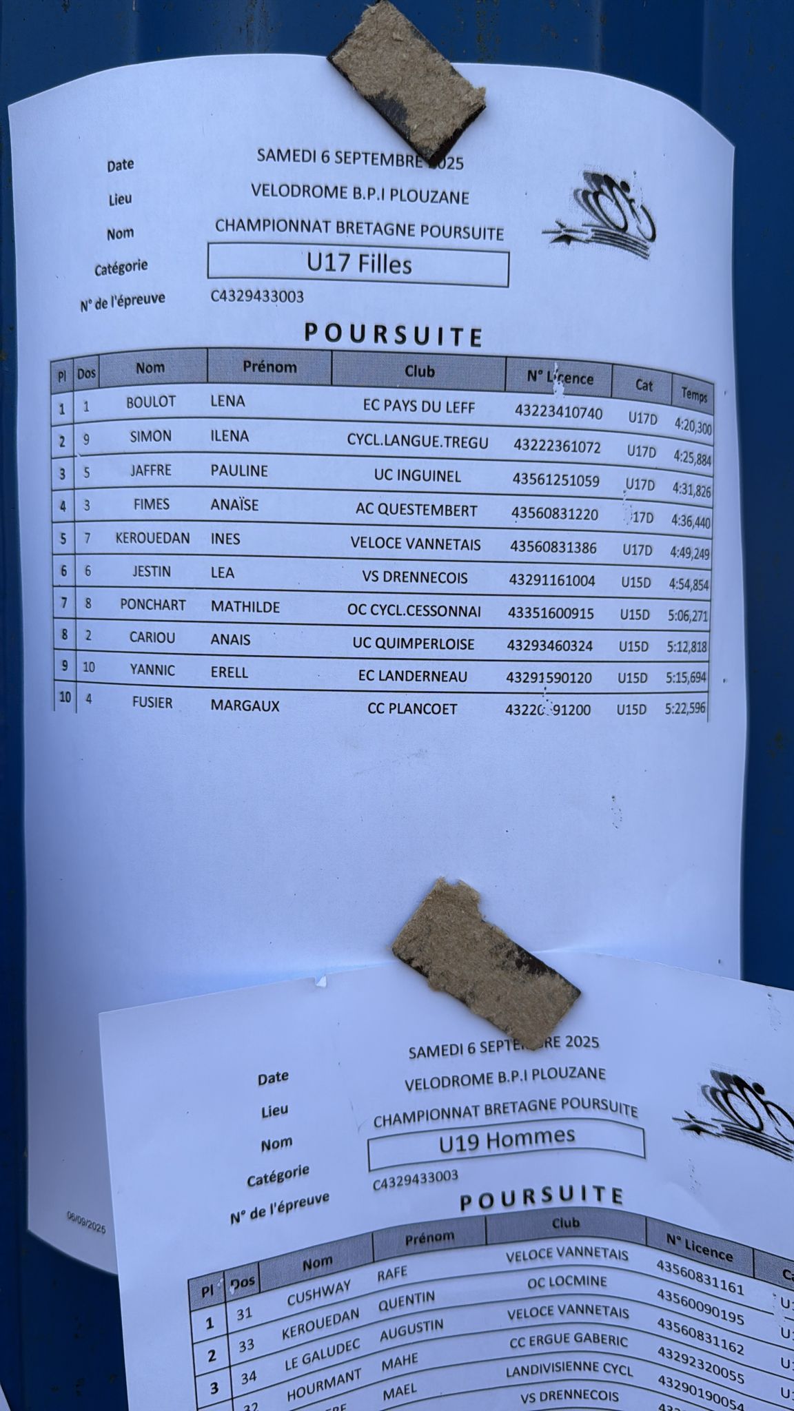 – Poursuite individuelle : Keny Le Roux 6 eme et Nolan Alencon 7 eme